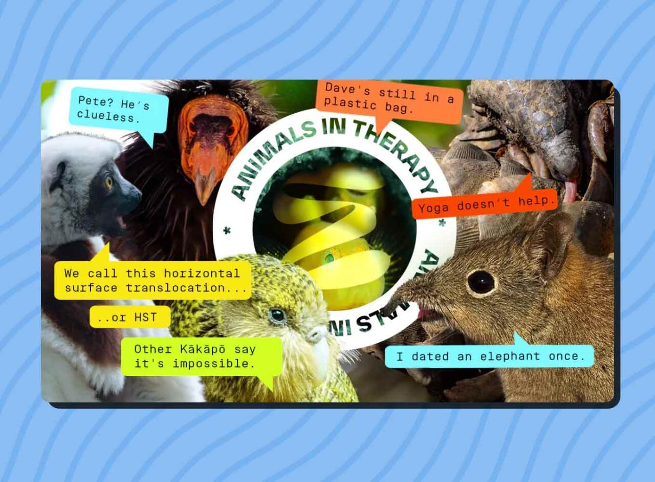Commissioned by On The Edge (now Studio BlueGreen HQ) and created by Tim Hope, Animals in Therapy is a collection of 31 animated shorts across 3 seasons that tell the stories of some of the worlds most endangered animals through a unique genre blend of comedy, natural history and animation.